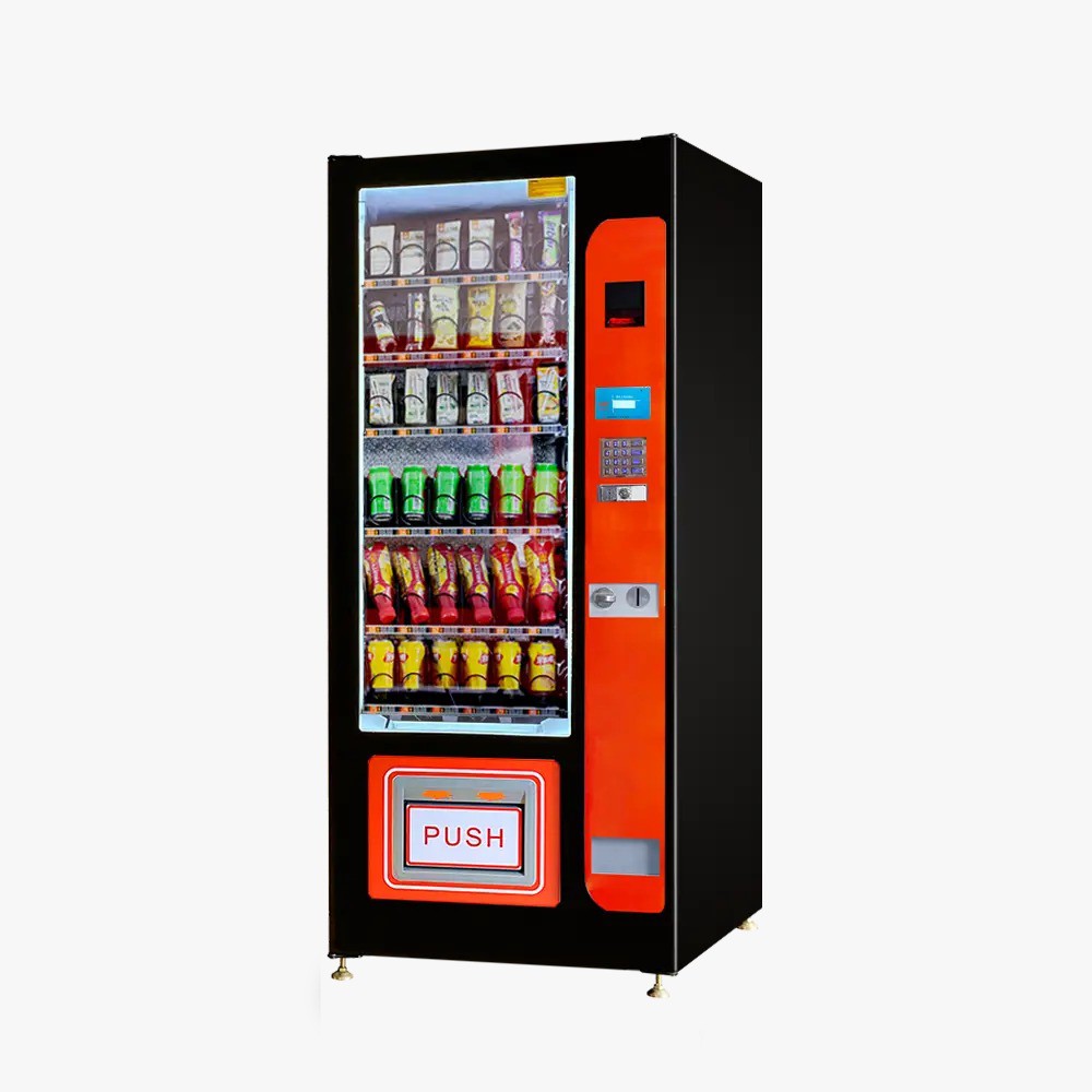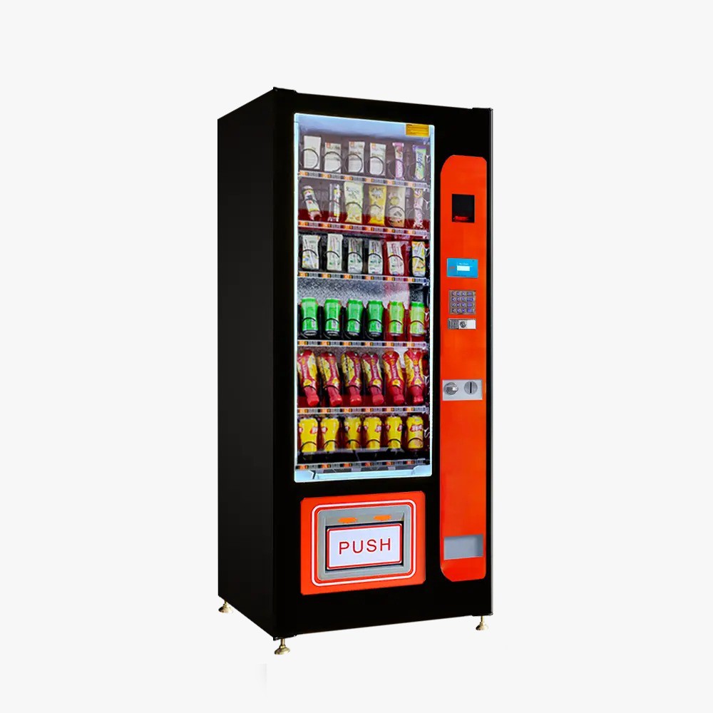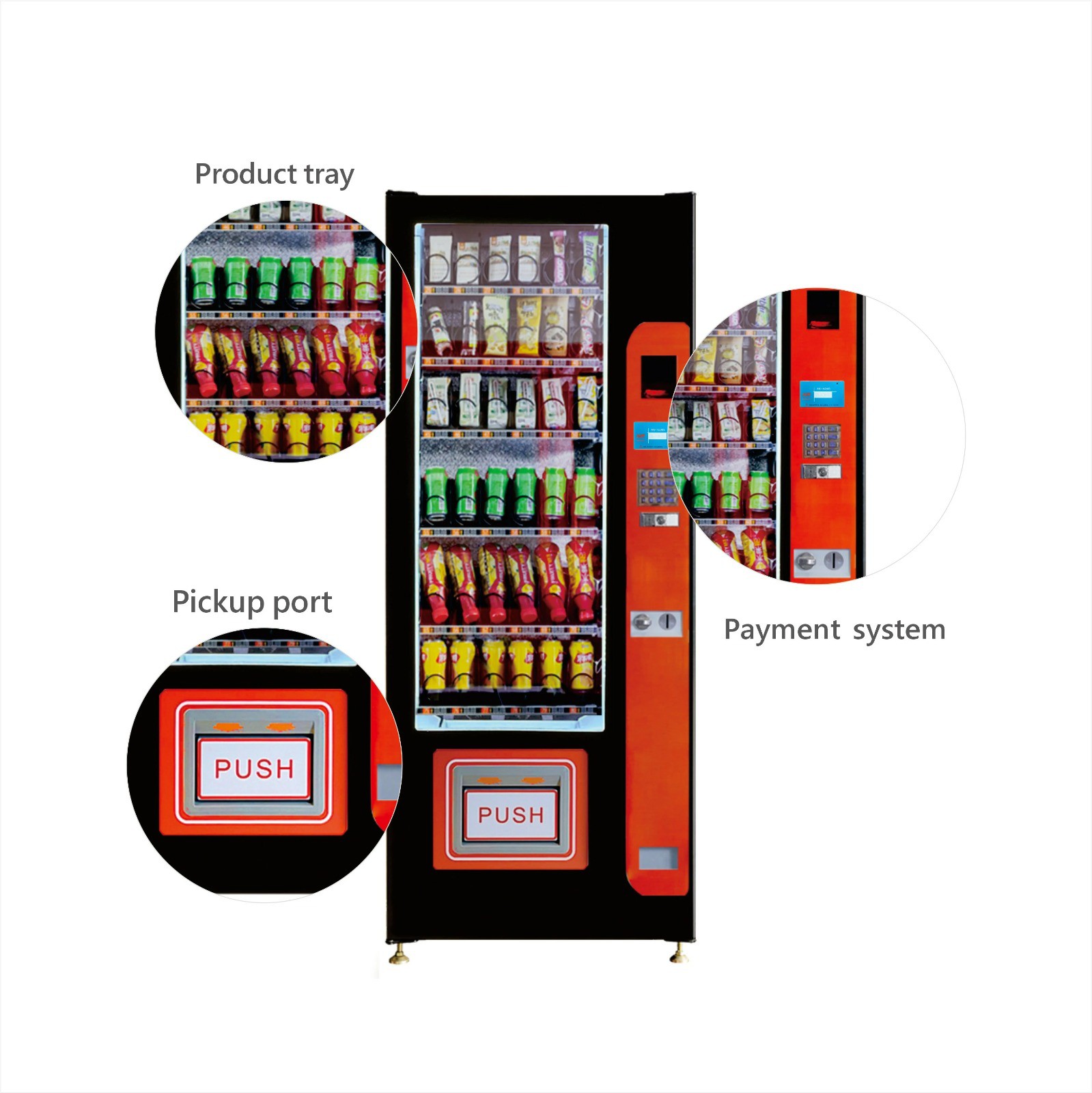 Esta máquina de venda automática de salgadinhos e bebidas pode ser usada para vender salgadinhos e bebidas geladas ou em temperatura ambiente em prédios comerciais, bairros, estações de metrô, pontos de ônibus, lojas sem atendentes e outros ambientes internos ou externos.